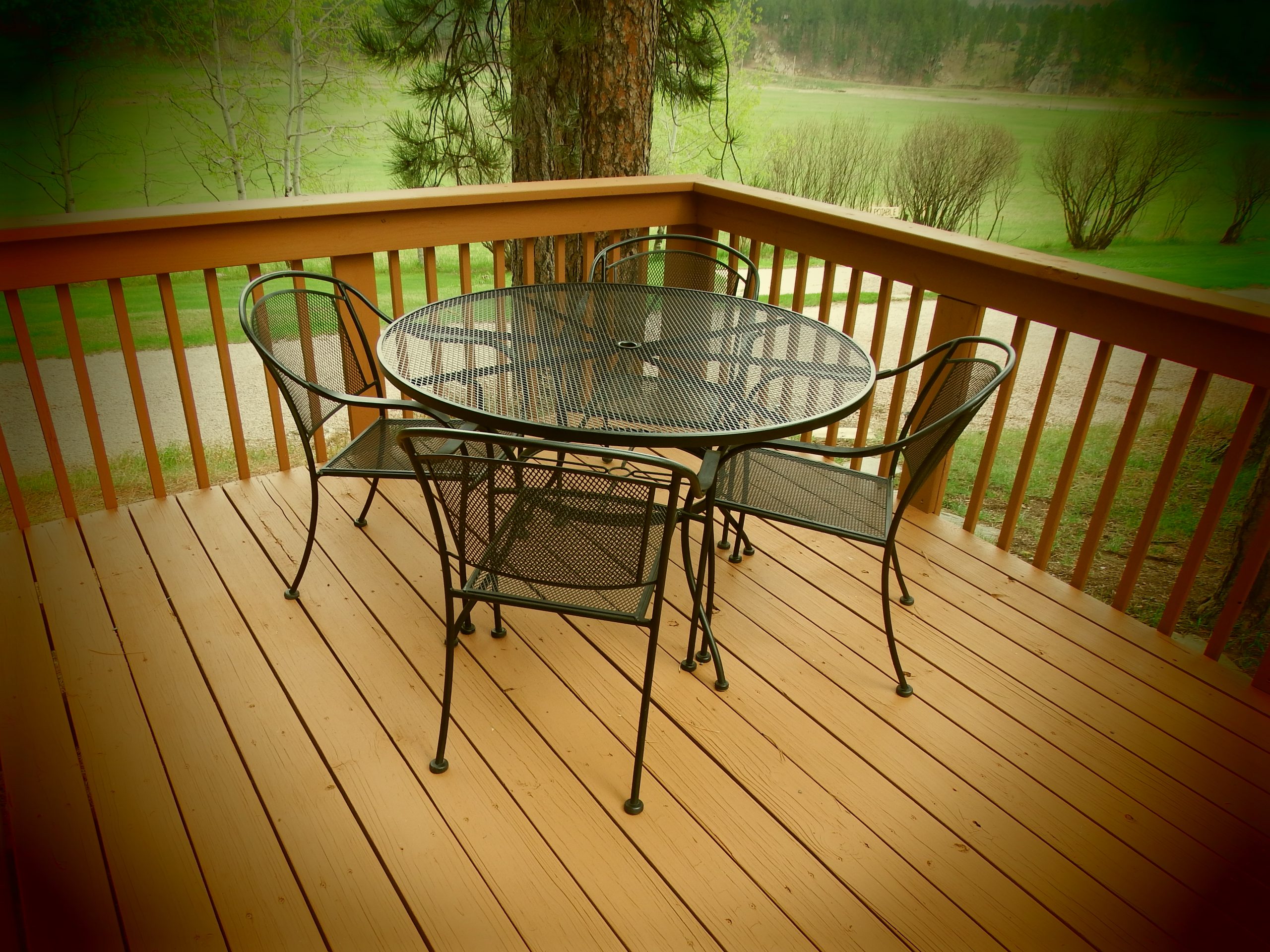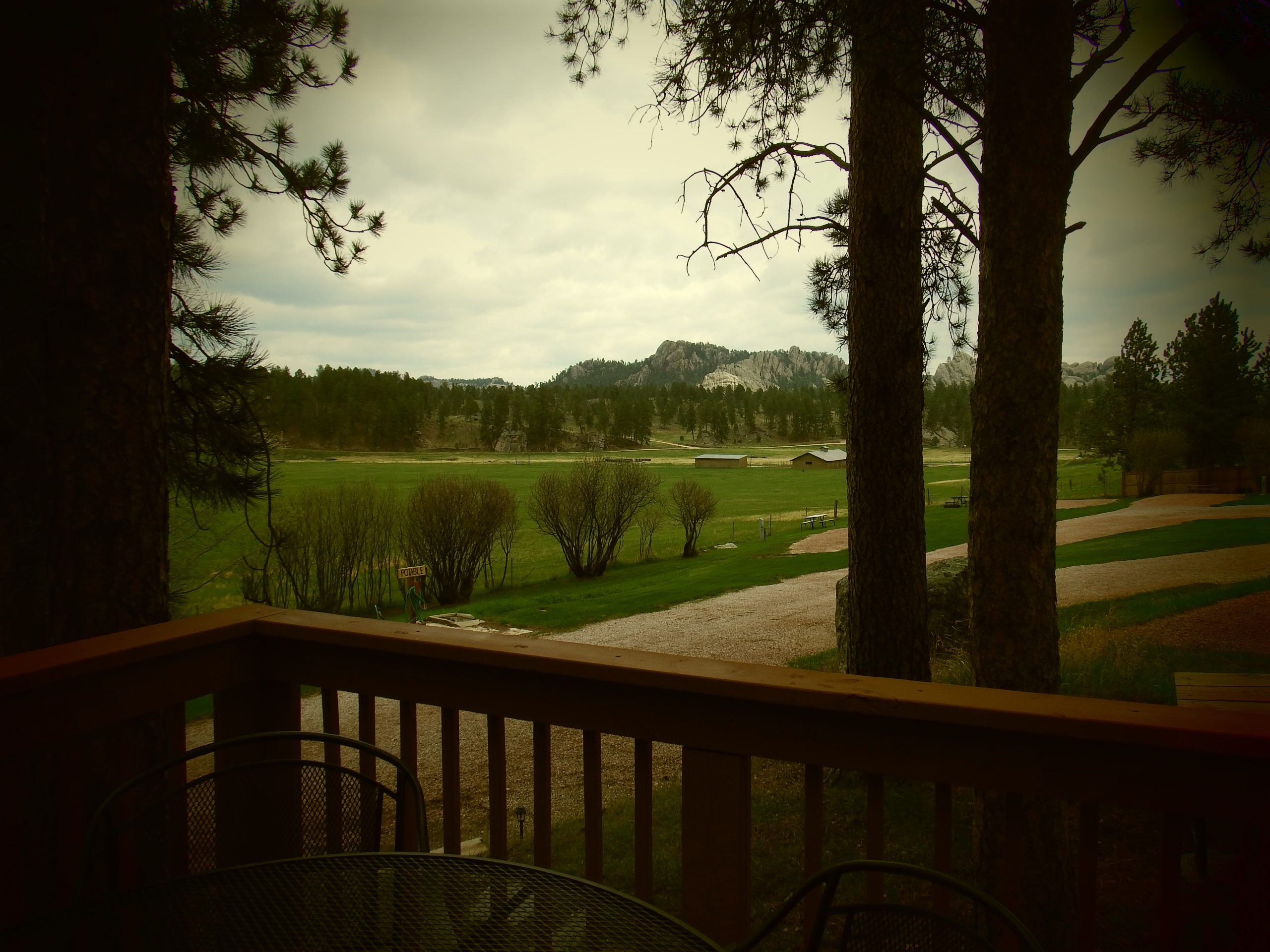 A spacious deck outside with seating provides a beautiful view of the granite peaks, green pastures, and rock outcroppings. This Cabin is a dry Cabin without a bathroom or kitchenette. Guests use the shower house.
